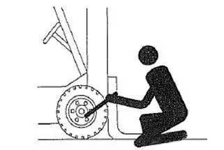 2.在與所要更換輪胎相對 的輪胎下面放置墊塊。