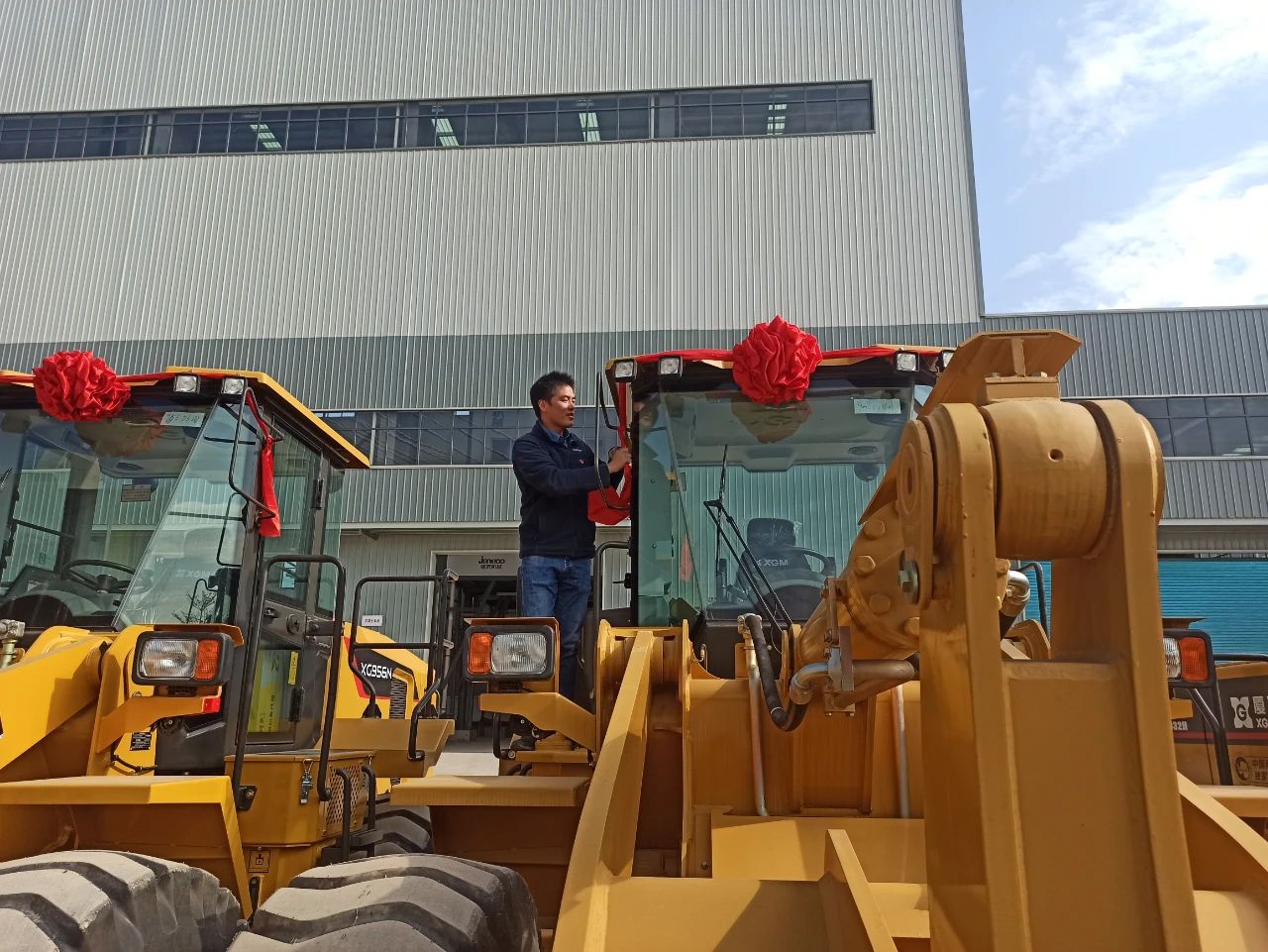 ▲廈工裝載機、挖掘機、叉車系列產(chǎn)品正式交付使用