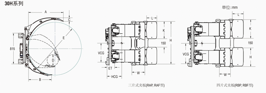 | Capacity 承載能力(kg) | Catalog Order NO 型號(hào) | Mounting Class 安裝等級(jí) | Roll Range 紙卷直徑 D-E(mm) | Long Arm Length 長(zhǎng)臂長(zhǎng)度 A(mm) | Short Arm Length 短臂長(zhǎng)度 B(mm) | Long Arm Thickness 長(zhǎng)臂厚度 C(mm) | Short Arm Type 短臂類型 | Contact Pad Size Long Arm 長(zhǎng)臂夾板尺寸 K×L(mm) | Contact Pad Size Short Arm 短臂夾板尺寸 H×W(mm) | Vertical Ctr.of Gravity 垂直重心VCG | Weight 自重(kg) | Effective 失載距ET(mm) | Horizontal Center of Gravity 水平重心CGH(mm) |