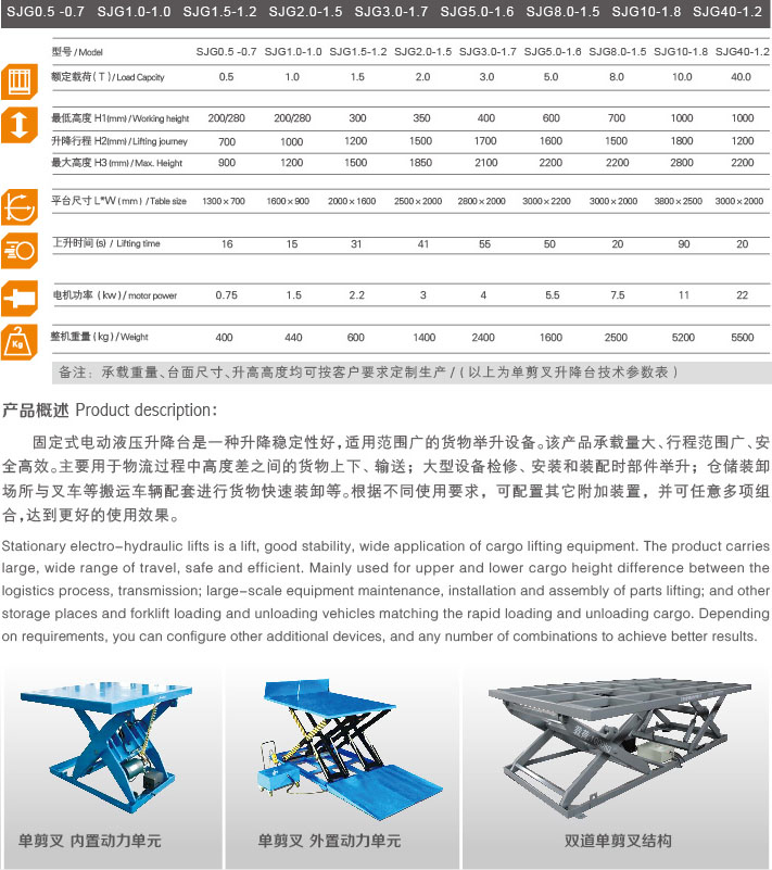 固定式電動(dòng)液壓升降臺(tái)是一種升降穩(wěn)定性好,適用范圍廣的貨物舉升設(shè)備。該產(chǎn)品承載量大、行程范圍廣、安全高效。主要用于物流過程中高度差之間的貨物上下、輸送;大型設(shè)備檢修、安裝和裝配時(shí)部件舉升;倉(cāng)儲(chǔ)裝卸場(chǎng)所與叉車等搬運(yùn)車輛配套進(jìn)行貨物快速裝卸等。根據(jù)不同使用要求,可配置其它附加裝置,并可任意多項(xiàng)組合,達(dá)到更好的使用效果。